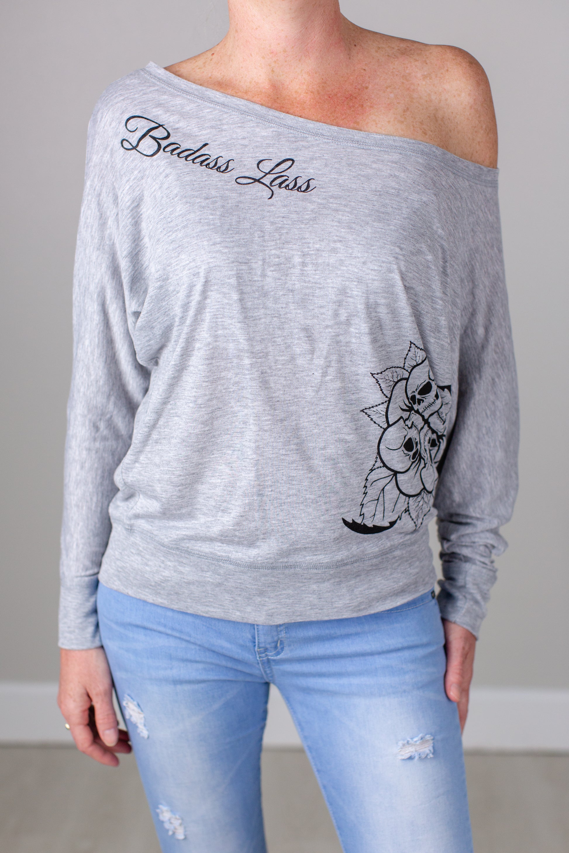 Cute grey long sleeve with Badass Lass skull flower